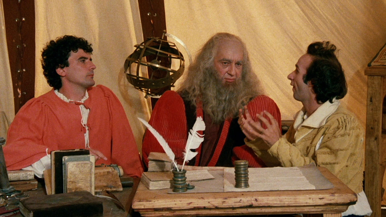 Troisi è il bidello Mario che con Benigni, l’insegnante Saverio, rimasti in panne con l’auto, trovano alloggio per la notte in una locanda, ma il mattino dopo si risvegliano nel Medioevo, come in un viaggio nel tempo. Curiosamente esistono due versioni, una cinematografica e una televisiva (pare ne esista anche una terza trasmessa in TV dalla Rai), in cui la storia è uguale fino a un certo punto per poi evolvere in modo diverso. Sono presenti riferimenti al frate domenicano Girolamo Savonarola, al navigatore Cristoforo Colombo e, solo in quella cinematografica a Leonardo da Vinci. Una commedia divertente che ha ottenuto un grande successo, tanto da diventare un film di culto anche per le nuove generazioni. Una versione restaurata della commedia è tornata nei cinema italiani nel 2015, grazie alla distribuzione della Lucky Red.