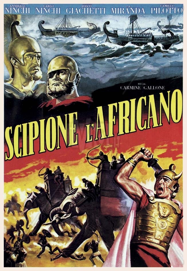 Il film in bianco e nero Scipione l’Africano del 1937 per la regia di Carmine Gallone, è un kolossal italiano piuttosto ambizioso che ricostruisce la storia, e fa parte del cinema di propaganda fascista. La sua spettacolarità serve a evidenziare la similitudine tra la passata grandezza di Roma e le audaci imprese dell’epoca fascista; è un film ideologico e al contempo celebrativo del colonialismo italiano nel Corno d’Africa con cui Mussolini intendeva assicurarsi una riserva demografica, industriale, agricola e di materie prime in caso di un nuovo conflitto generalizzato in Europa, e per fare dell’Italia una potenza mondiale.